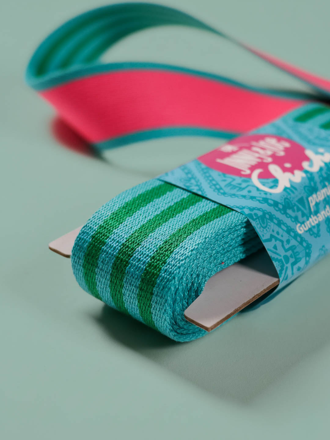 Wunderschönes Premium Gurtband in 38mm Breite und 2m Länge. Für alle Neonliebhaber haben wir jetzt das ideale Gurtband. Auf der einen Seite knalltürkis mit grün gestreift UND auf der anderen Seite türkis mit Neon pink Mitte! Das Gurtband ist ideal um deine Tasche zu pimpen oder du machst dir einfach einen leuchtenden Gürtel.