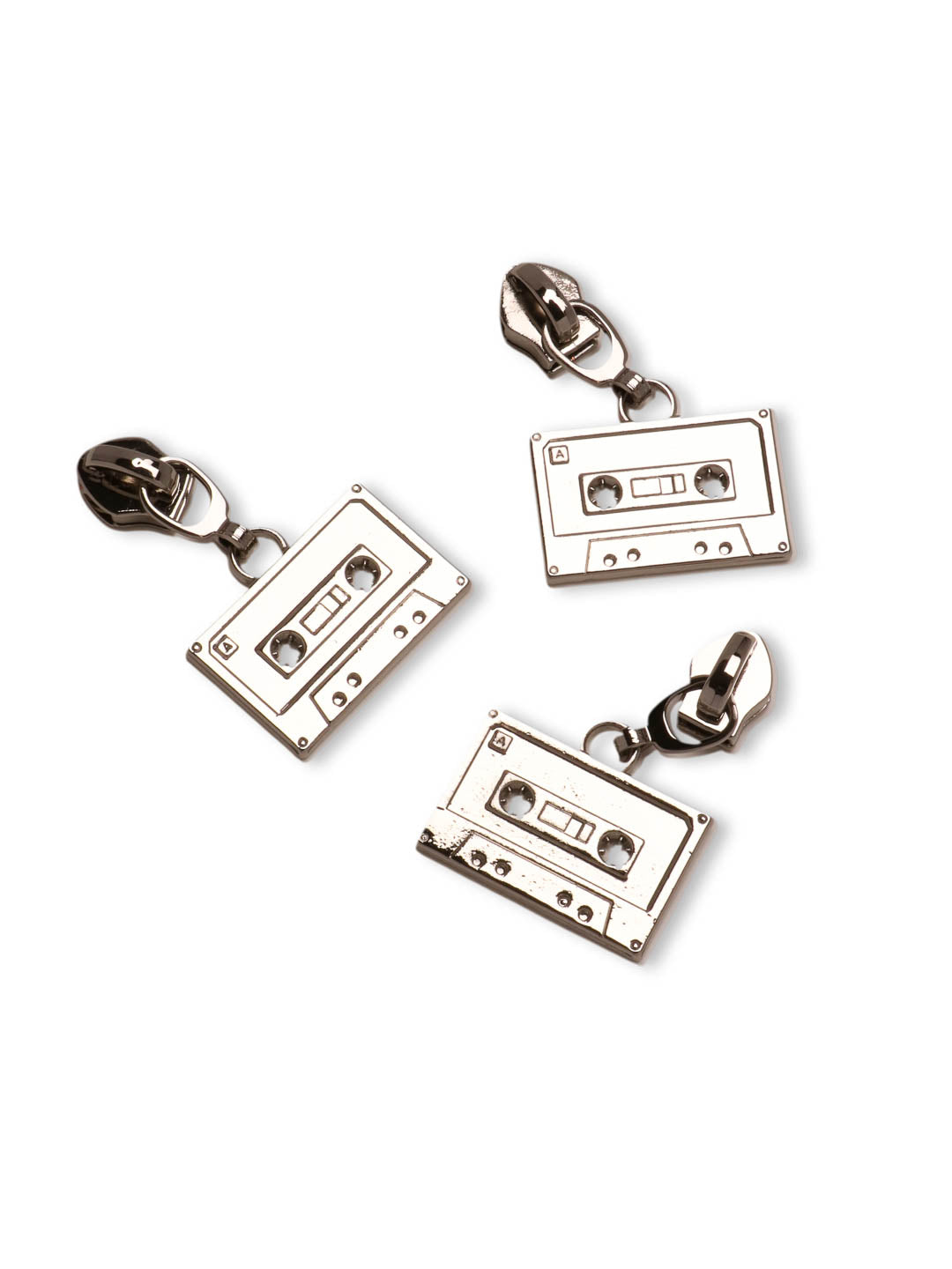An alle Kinder der 80er und 90er, hier sind sie, unsere Mixtape-Anhänger #5! Du kannst sie mit allen unserer Reißverschlüsse #5 kombinieren und sie werden dein nächstes Nähprojekt garantiert wahnsinnig aufpeppen. Die Rückseite hat keine Motivprägung und ist glatt.