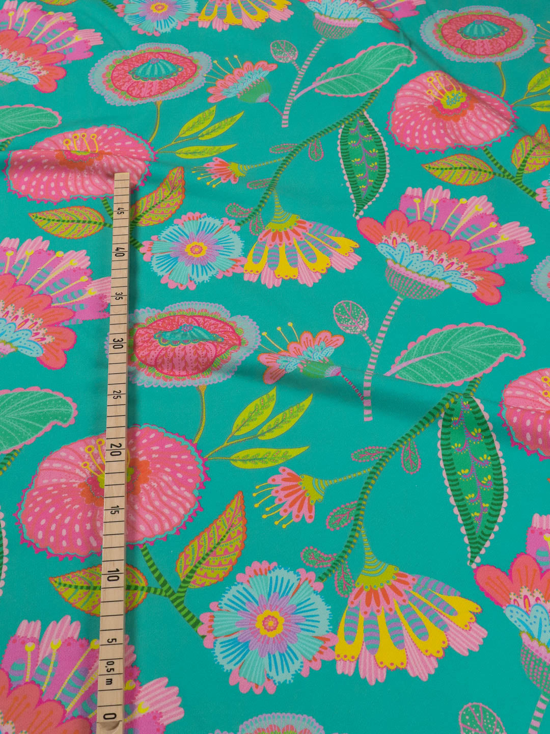 Fast alle unsere Stoffe besitzen einen ca. 5 cm breiten Randdruck. Damit ist der Papport in der Gesamtbreite um 5-10 cm reduziert.