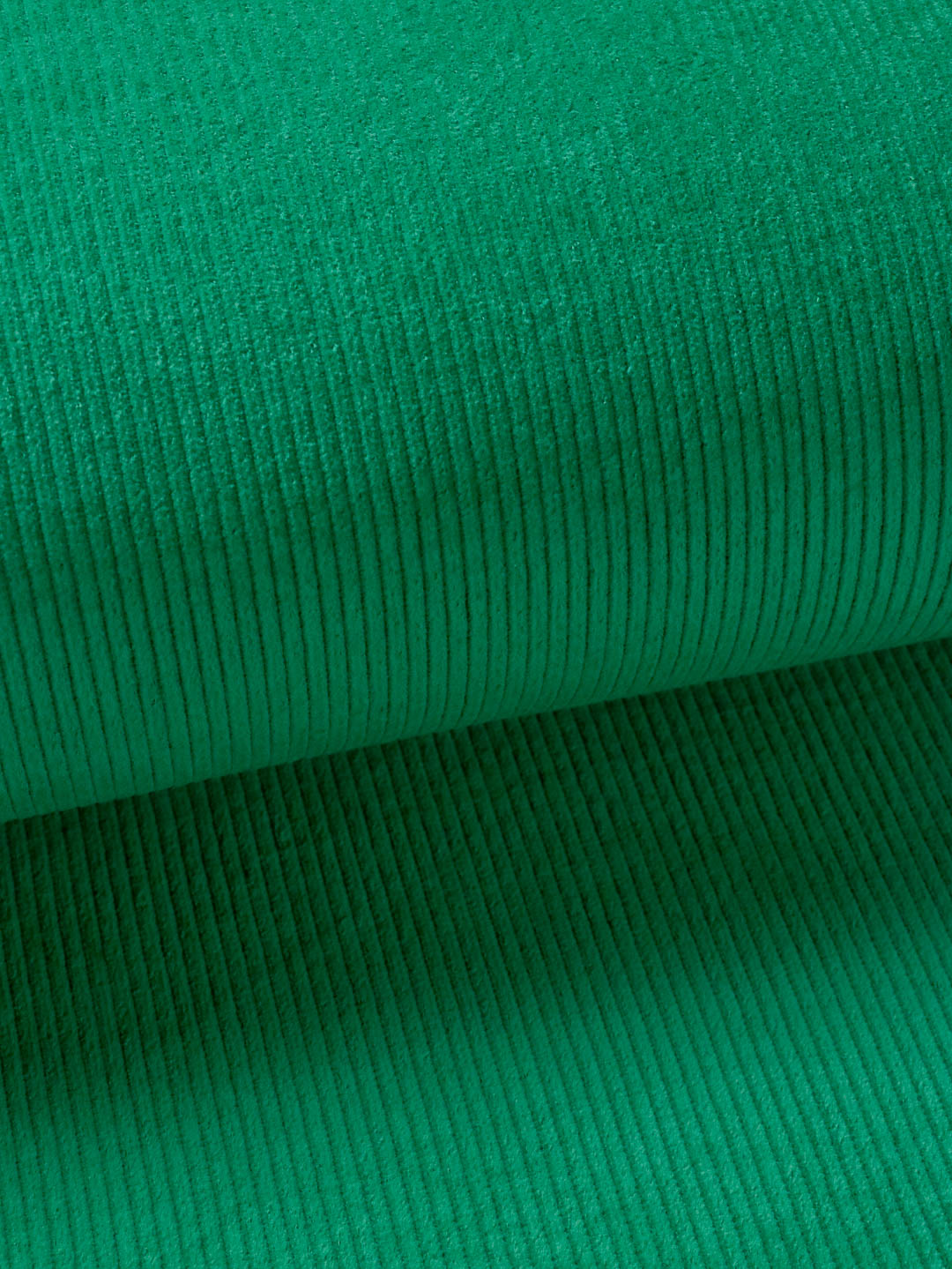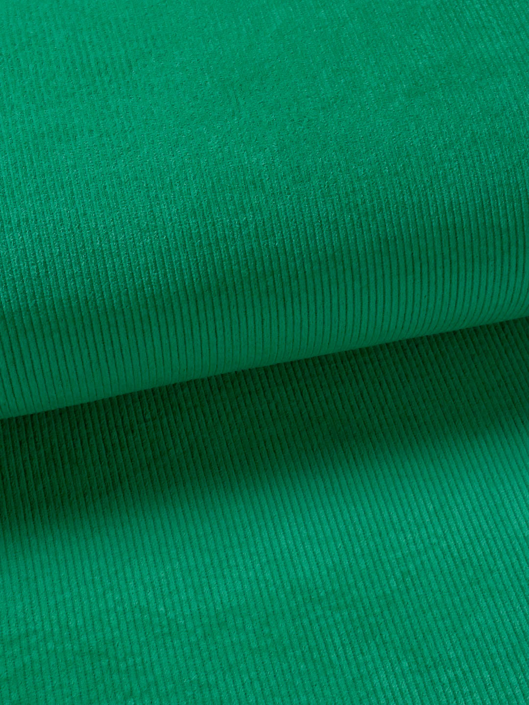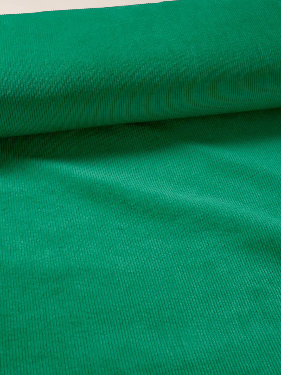 Dieser weiche Stretch-Cord in Grün fühlt sich dank seiner samtigen Oberfläche besonders angenehm an. Durch das spezielle Waschverfahren bekommt er einen schönen, geschmeidigen Griff.