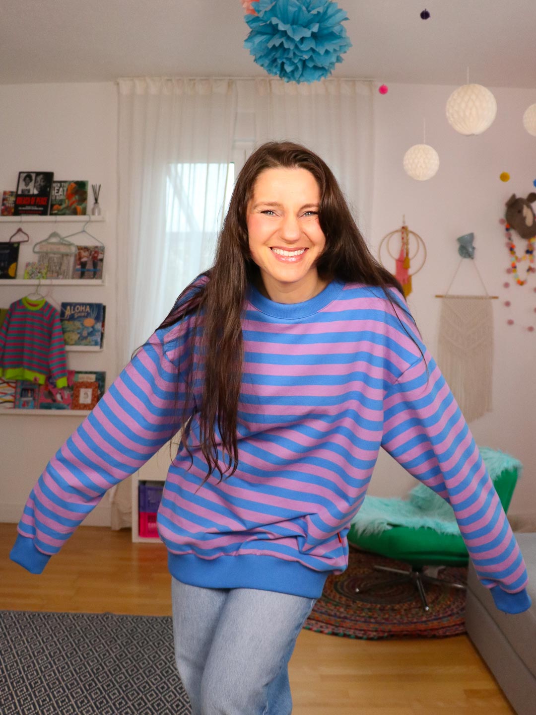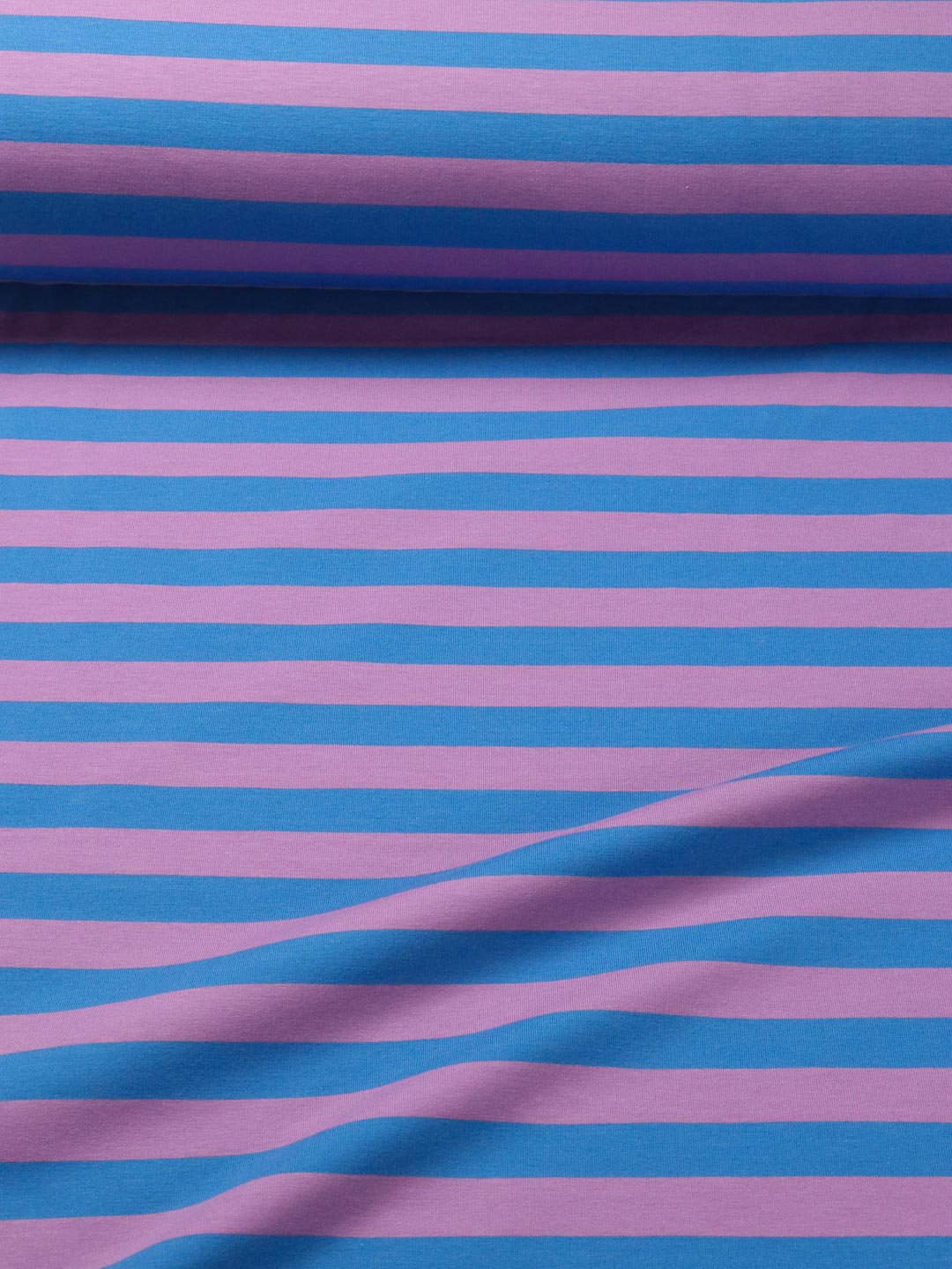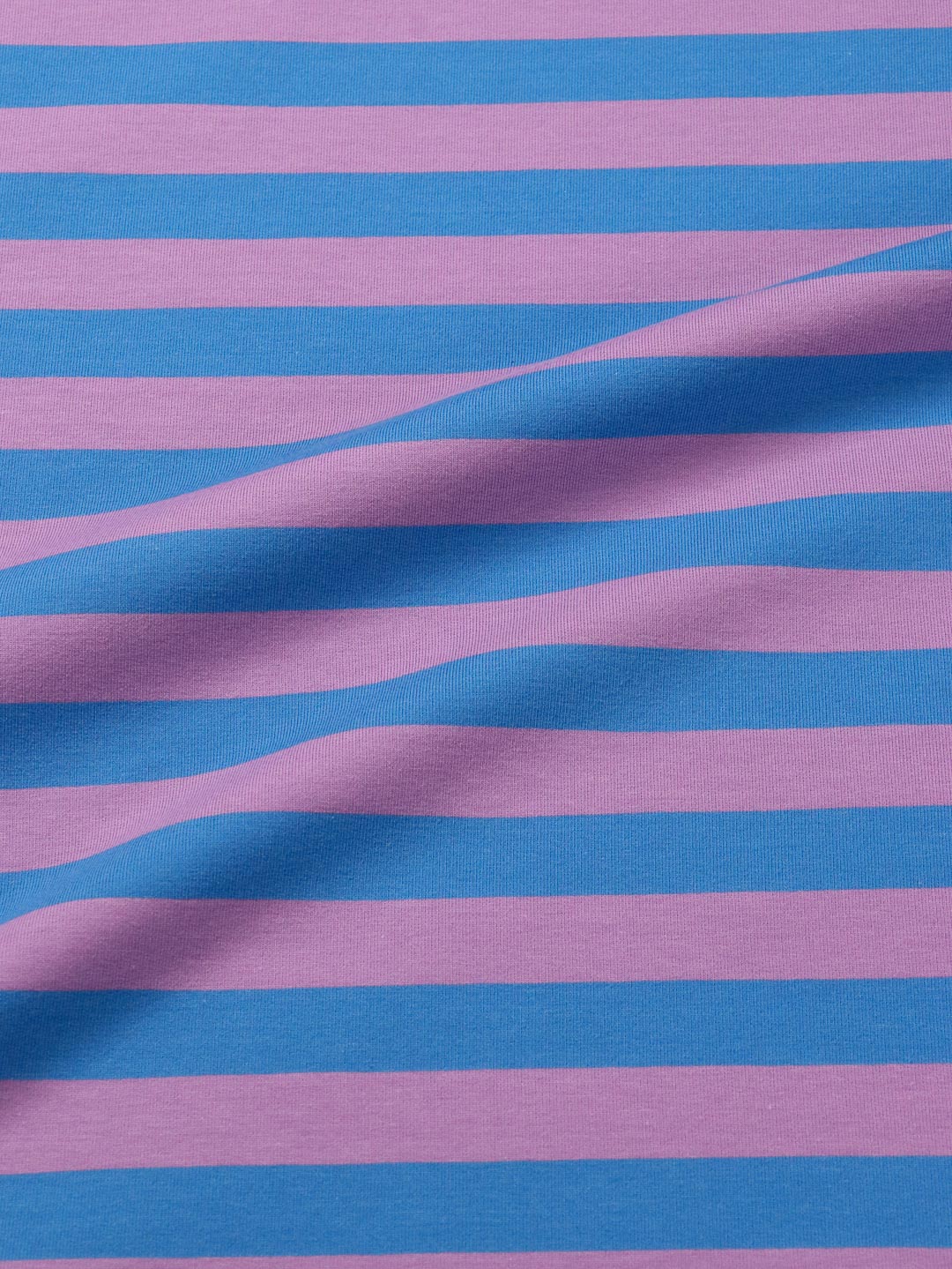 Hochwertiger Bio French Terry, gefertigt aus 95% Bio-Baumwolle und 5% Elastan. Der tolle, Butterweiche Ringel ist garngefärbt, die Streifen sind also gestrickt, nicht gedruckt. Die Ringel haben eine Höhe von 2cm. – Design by Jinny & Joe.