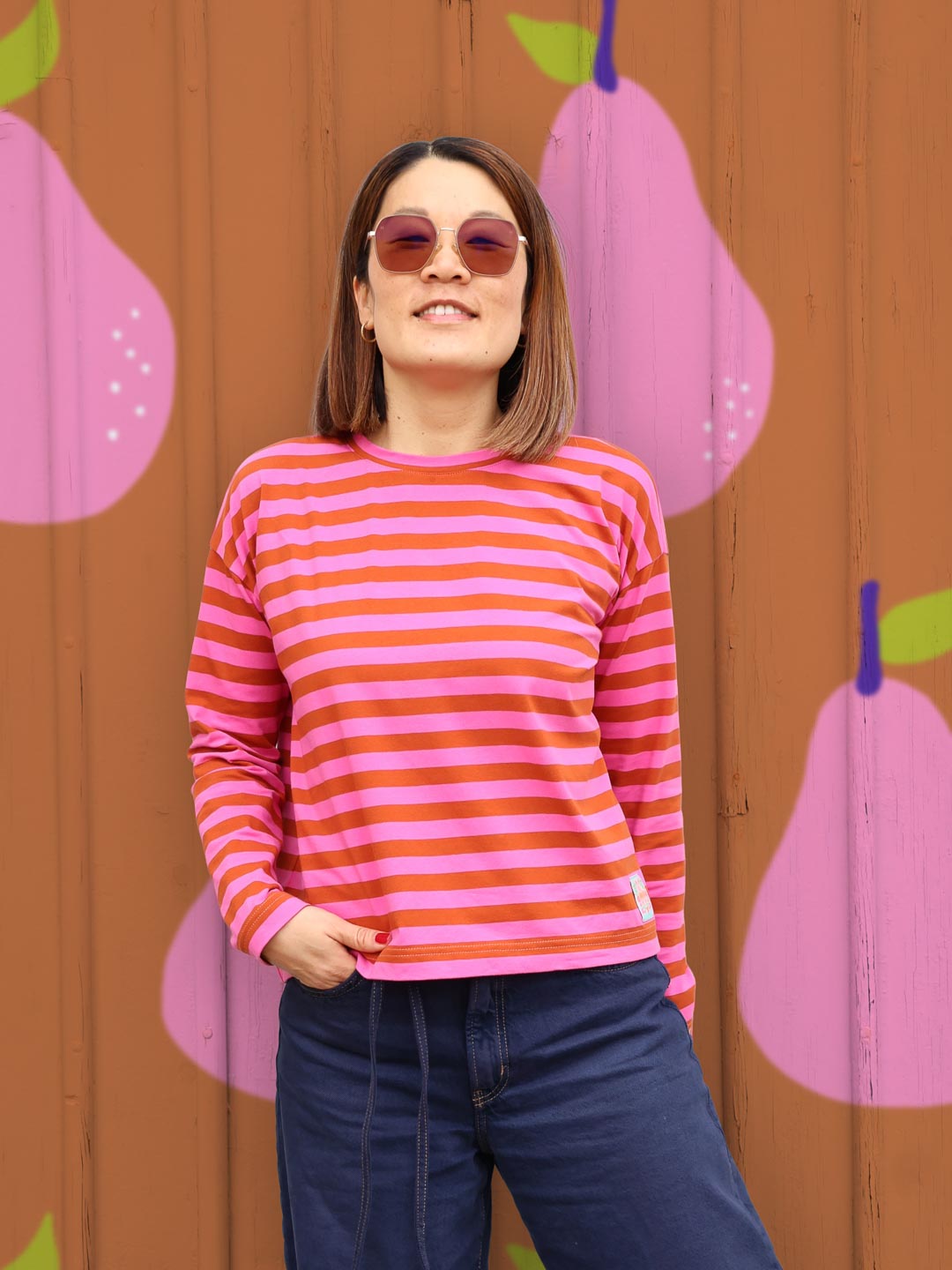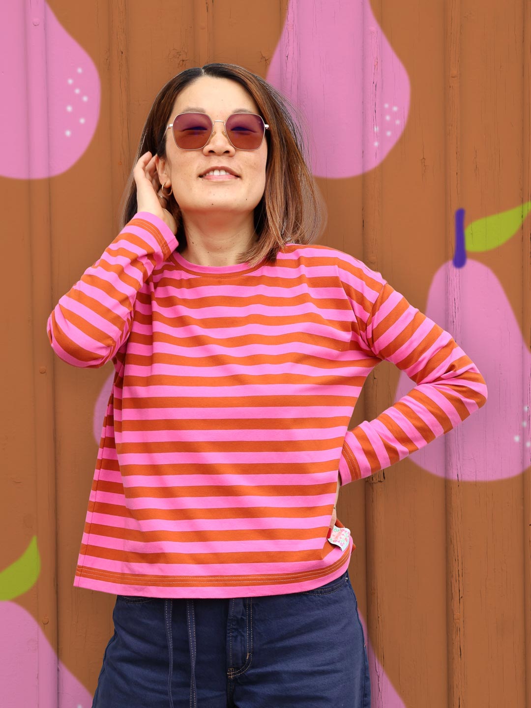 Hochwertiger Bio Jersey, gefertigt aus 95% Bio-Baumwolle und 5% Elastan. Unsere Ringel sind garngefärbt, die Streifen sind also gestrickt, nicht gedruckt und somit besonders hochwertig. Die einzelnen Ringel auf dem Butterweichen Bio-Jersey haben eine Höhe von 1,4cm. – Design by Jinny & Joe.