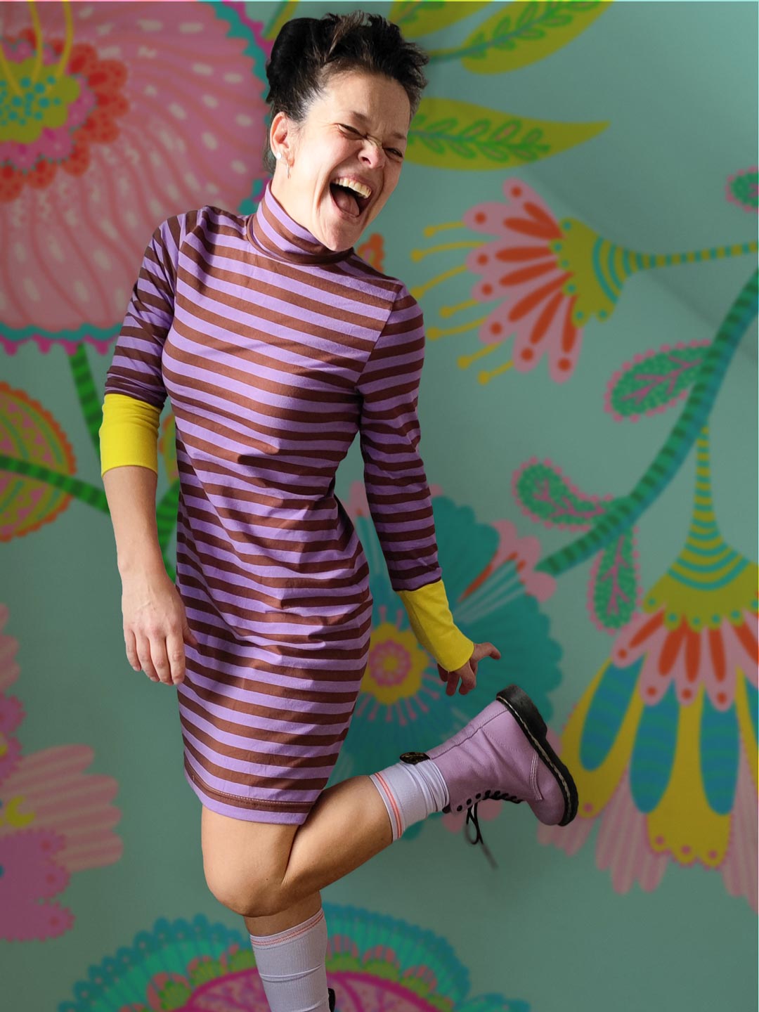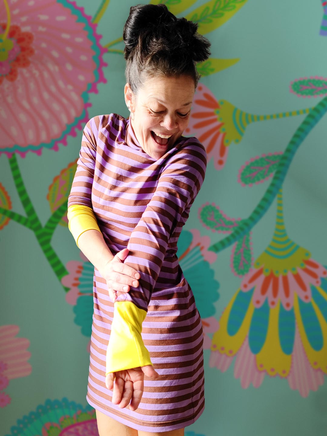 Hochwertiger Bio Jersey, gefertigt aus 95% Bio-Baumwolle und 5% Elastan. Unsere Ringel sind garngefärbt, die Streifen sind also gestrickt, nicht gedruckt und somit besonders hochwertig. Die einzelnen Ringel auf dem Butterweichen Bio-Jersey haben eine Höhe von 1,4cm. – Design by Jinny & Joe.