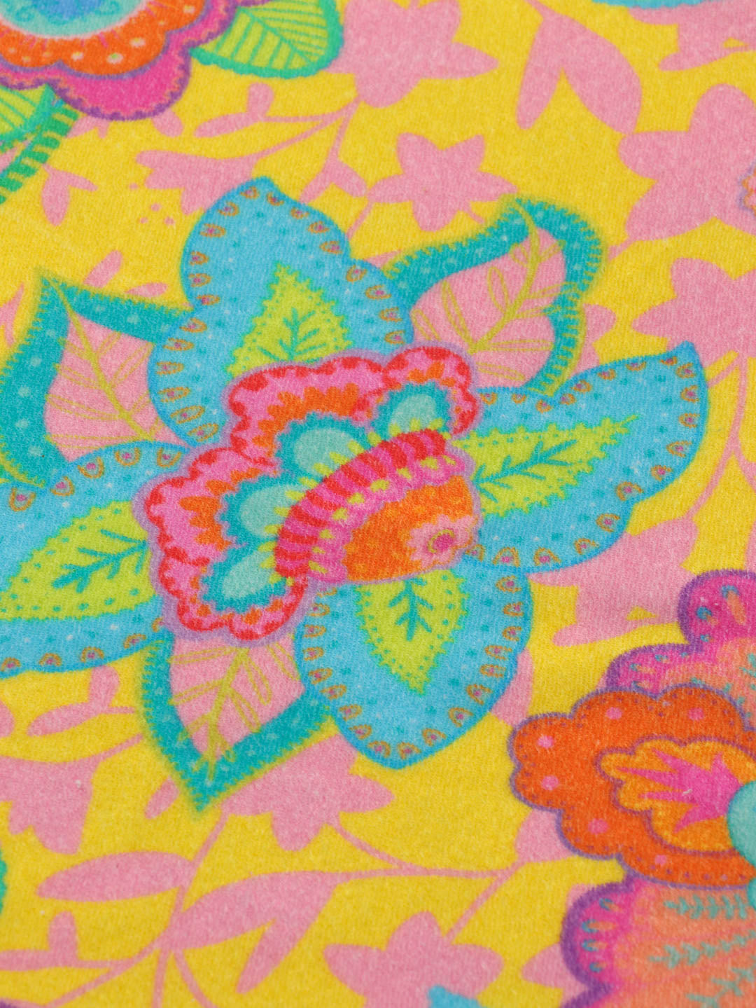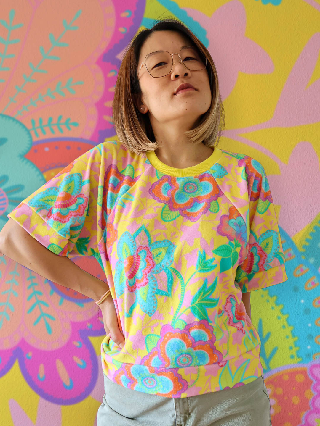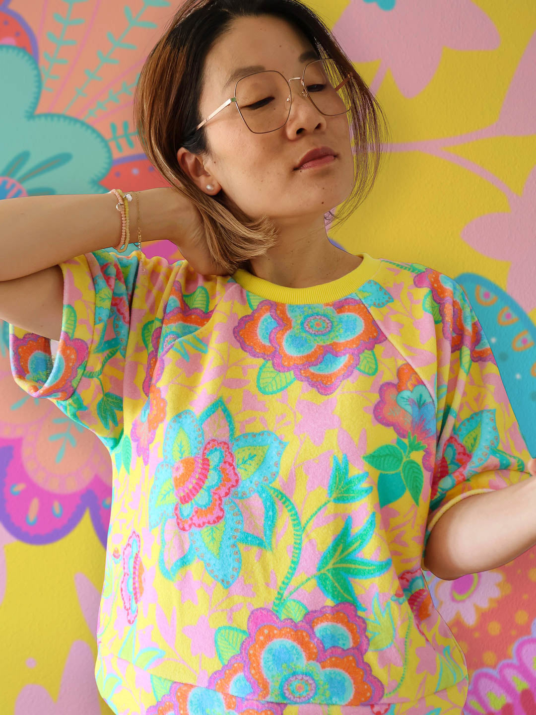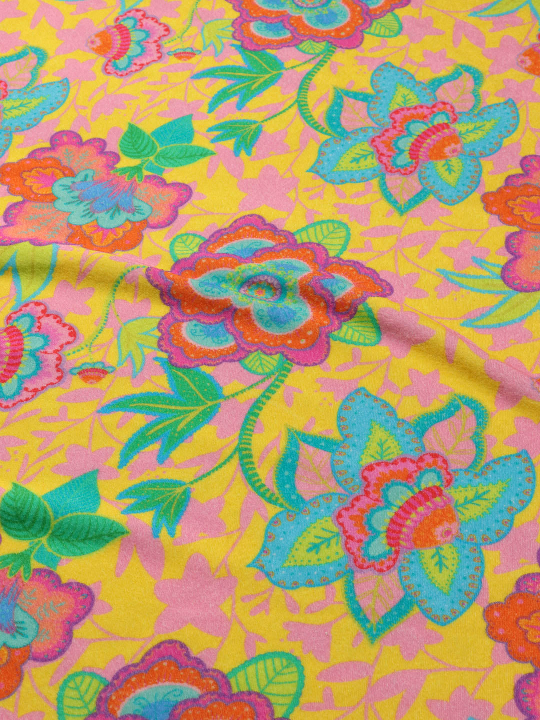 Weich, flauschig und nachhaltig – unser Strick-Frotteestoff bringt alles mit, was man sich fürs nächste Nähprojekt wünscht. Hergestellt aus 90 % Bio-Baumwolle und 10 % recyceltem PET. Mit ca. 300 g/m² und 160 cm Breite ist er ideal für gemütliche Hosen, Pyjamas, Kissenbezüge oder Kinderklamotten. Und das Blumenmuster? Macht einfach gute Laune.