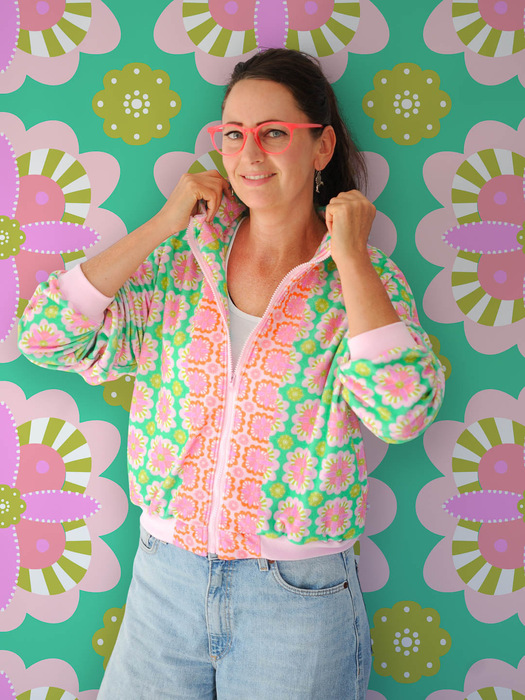 J&J Bio Strick-Frottee Tante Gusta springgreen. Der Stoff sieht nicht nur gut aus, sondern fühlt sich auch so an: Weich, flauschig und aus 90 % Bio-Baumwolle plus 10 % recyceltem PET. Mit seinen ca. 300 g/m² bringt er genau das richtige Maß an Kuschelfaktor mit und lässt sich prima vernähen – ob für Kinderkleidung, Schlafanzüge, Kissen oder gemütliche Hosen. Breite: 160 cm.