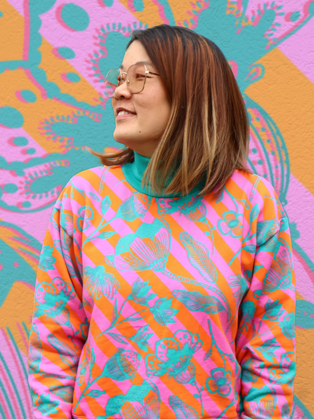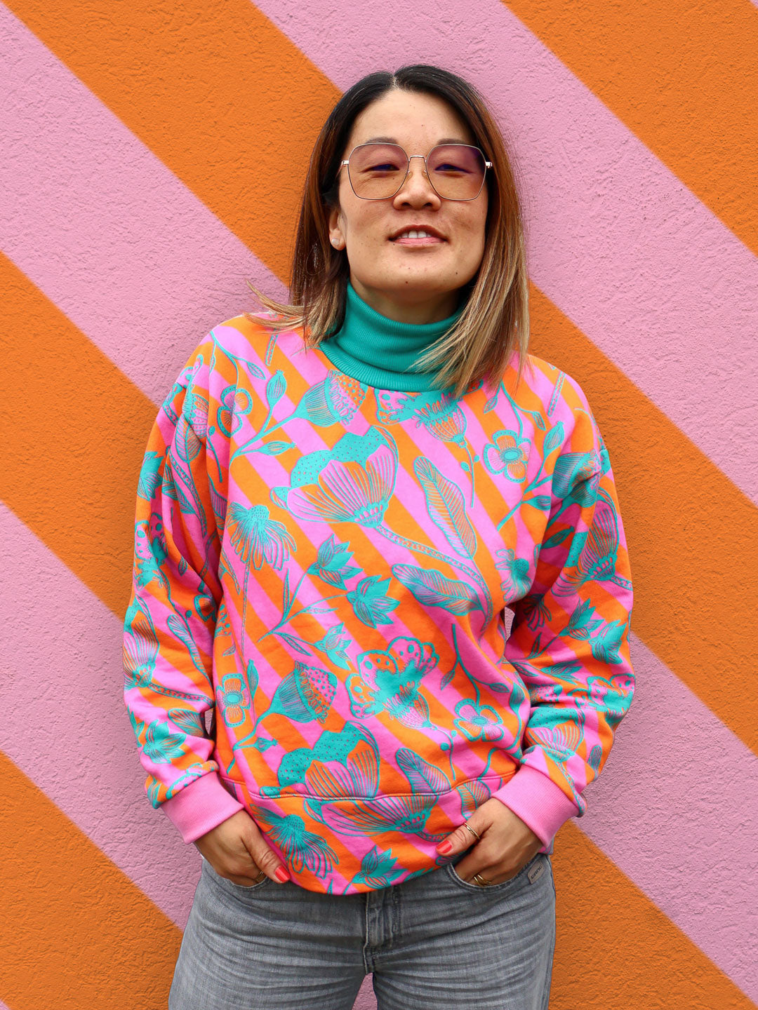Auf der Innenseite extraweich angeraut und angenehm warm: Unser Bio-Kuschelsweat „Big Bouquet“ in 100% Baumwolle (extrabreit). Leuchtende Farben auf toller Bioqualität Ideal für Hoodies, Sweater, Kleider oder gemütliche Jogger.