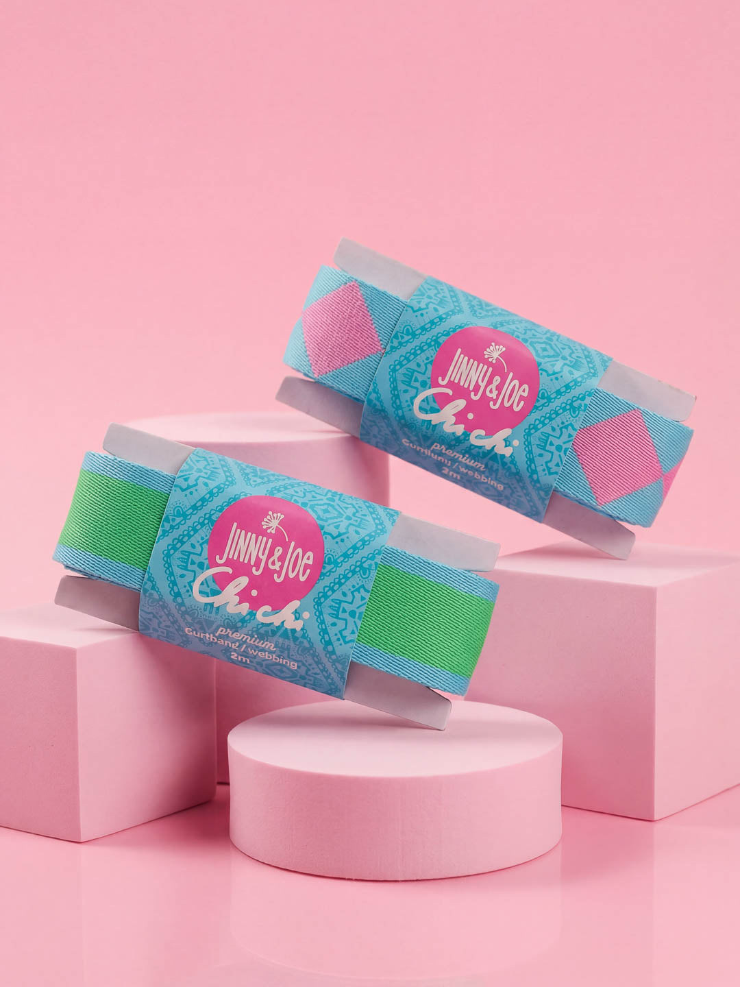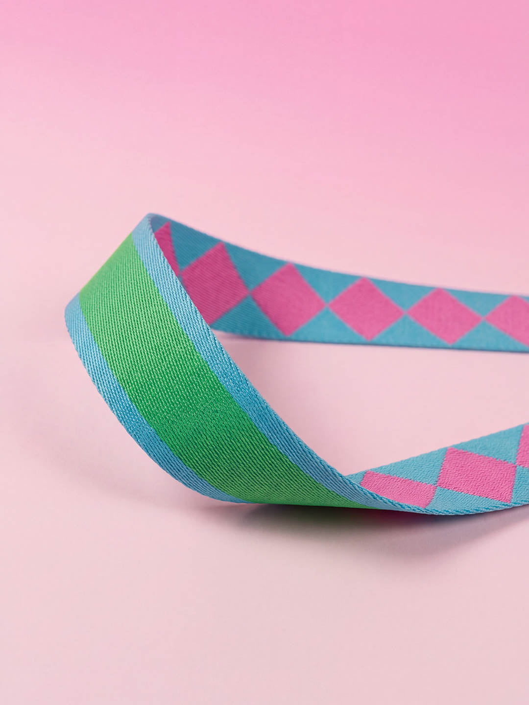 J&J Gurtband Premium 38mm Doubleface Diamondz rosa türkis