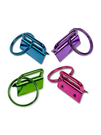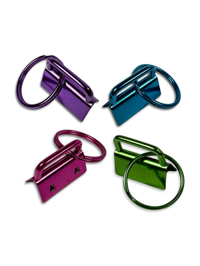 Robuster Metall-Rohling in vier Farben – passt perfekt zu unseren 25 mm breiten Gurtbändern. Einfach dein Material einlegen, zusammendrücken und fertig ist dein selbstgemachtes Schlüsselband. Pro Set gibt’s 4 Klammern und 4 Schlüsselringe (ca. 27 mm). Funktioniert super einfach. Und sieht cool aus.