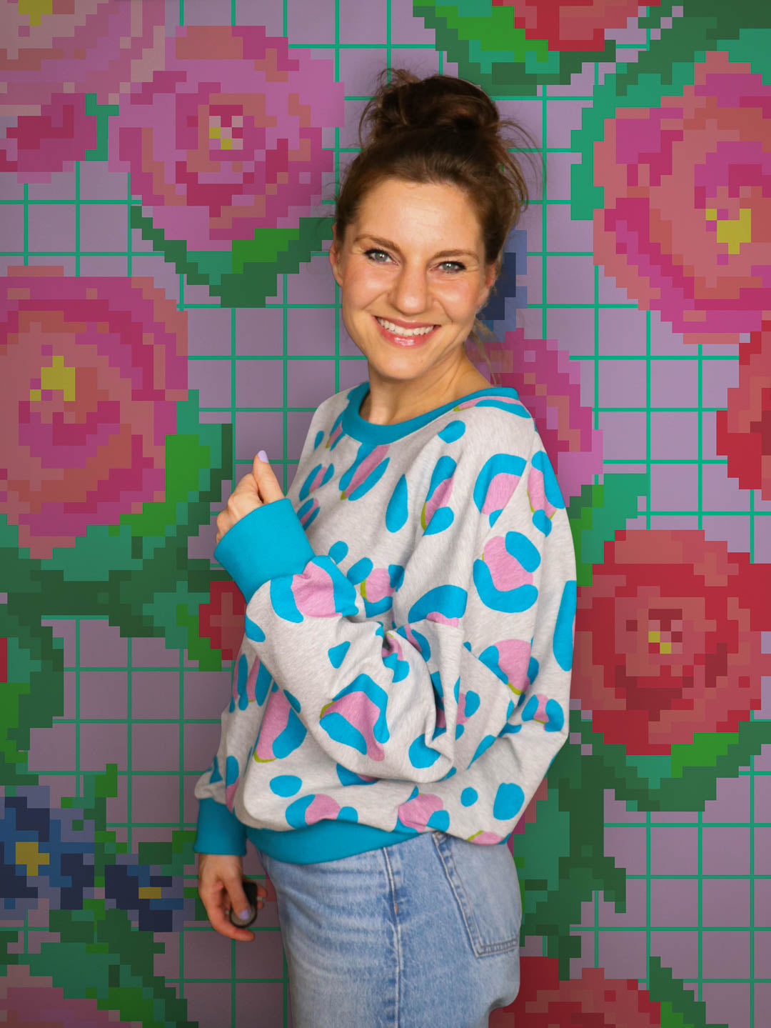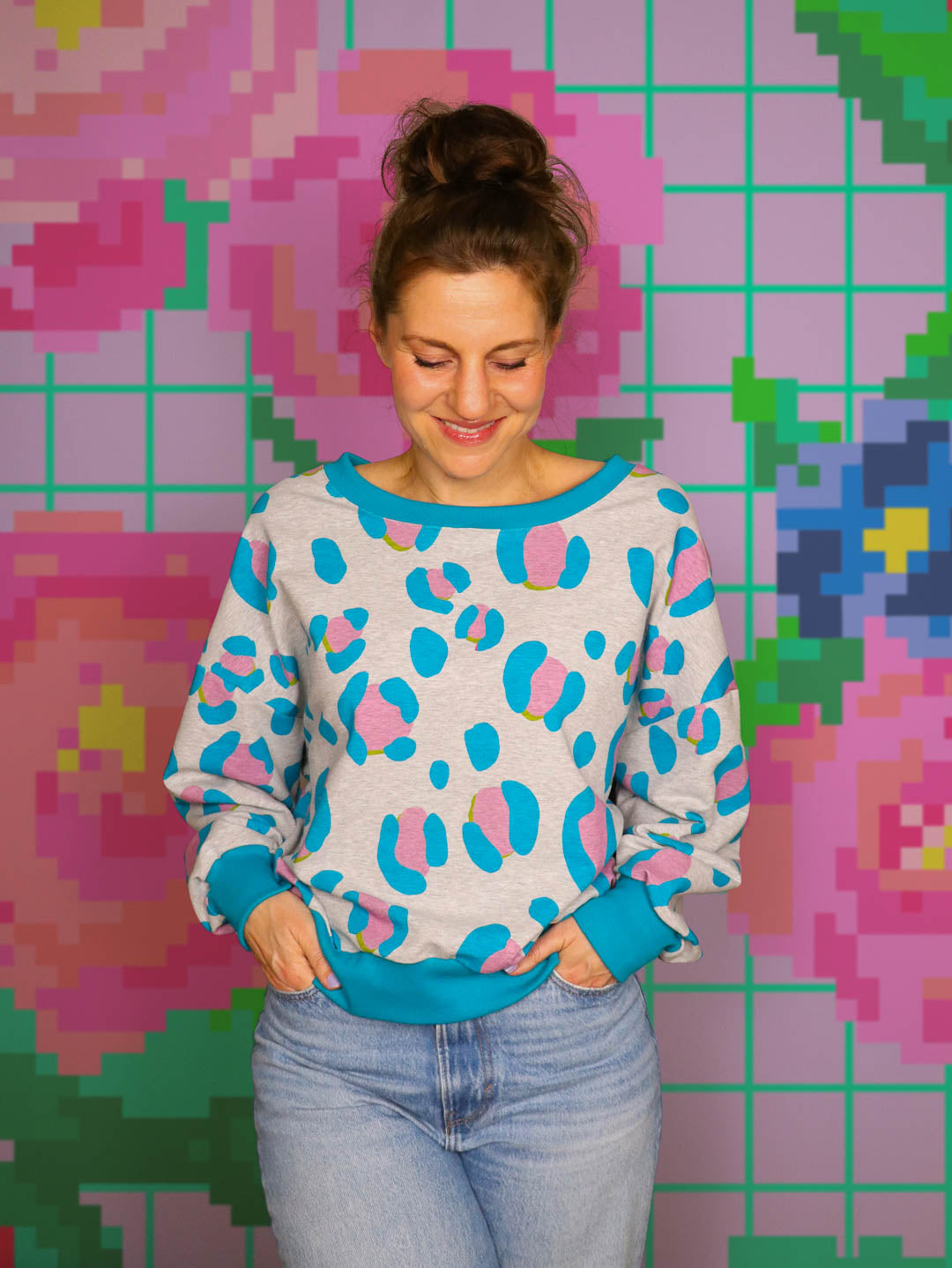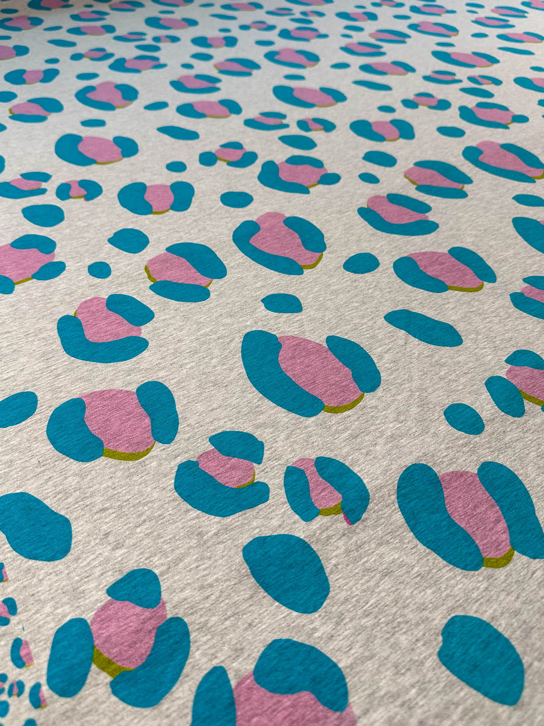 French Terry mit auffälligem Leo-Muster in Melange-Optik – für alle, die es gern etwas extravaganter mögen. Der Stoff ist weich und liegt angenehm auf der Haut.