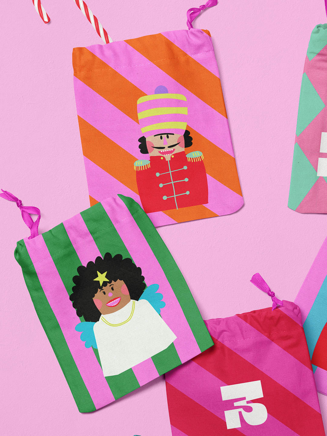 J&J Adventskalender Panel Holly Jolly pink